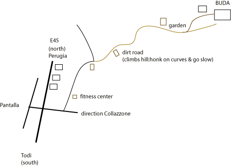 back away from Terni to the exit that says Perugia-Cesena. After you